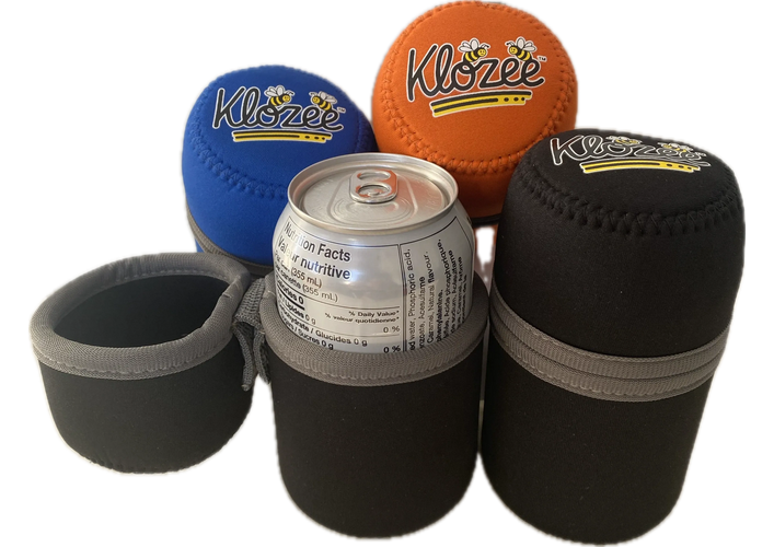 Klozee is a trademarked and patented covered can cooler, designed to keep beverages cold while providing protection for all ages against wasps, bees, and other insects. Unlike other can insulators, Klozee features a magnetic top cover that opens easily and closes securely between sips, making it the perfect covered cold can koozie for outdoor enjoyment.